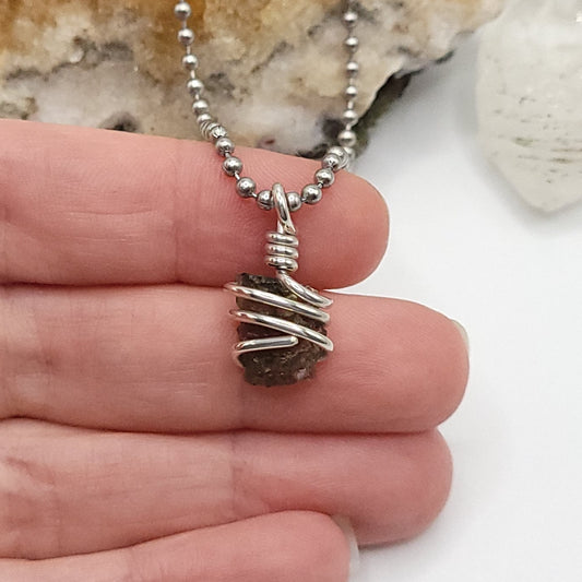 Raw Moldavite Necklace in Silver - Crystal for Transformation