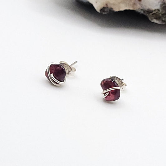 Garnet Stud Earrings in Silver - Crystal for Strength, Grounding, & Vitality