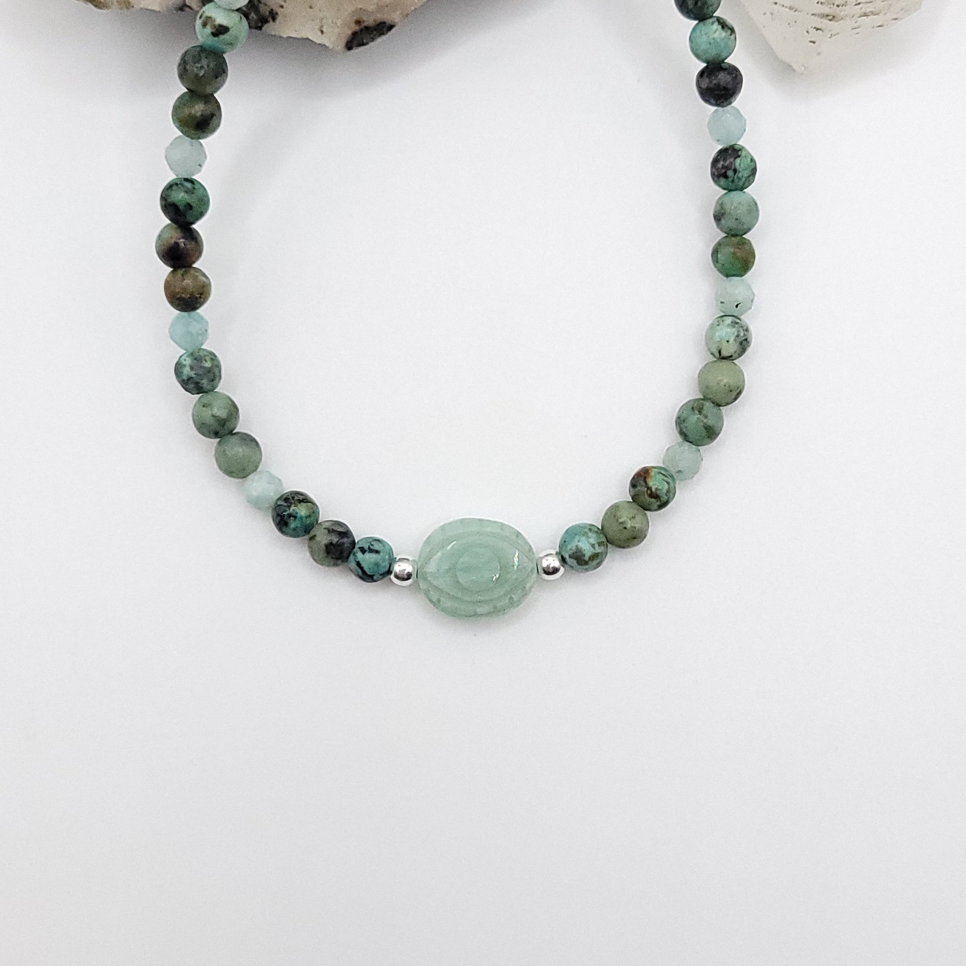 🔸 Stone: Amazonite Evil Eye, 4mm African Turquoise & 3mm Amazonite Beads