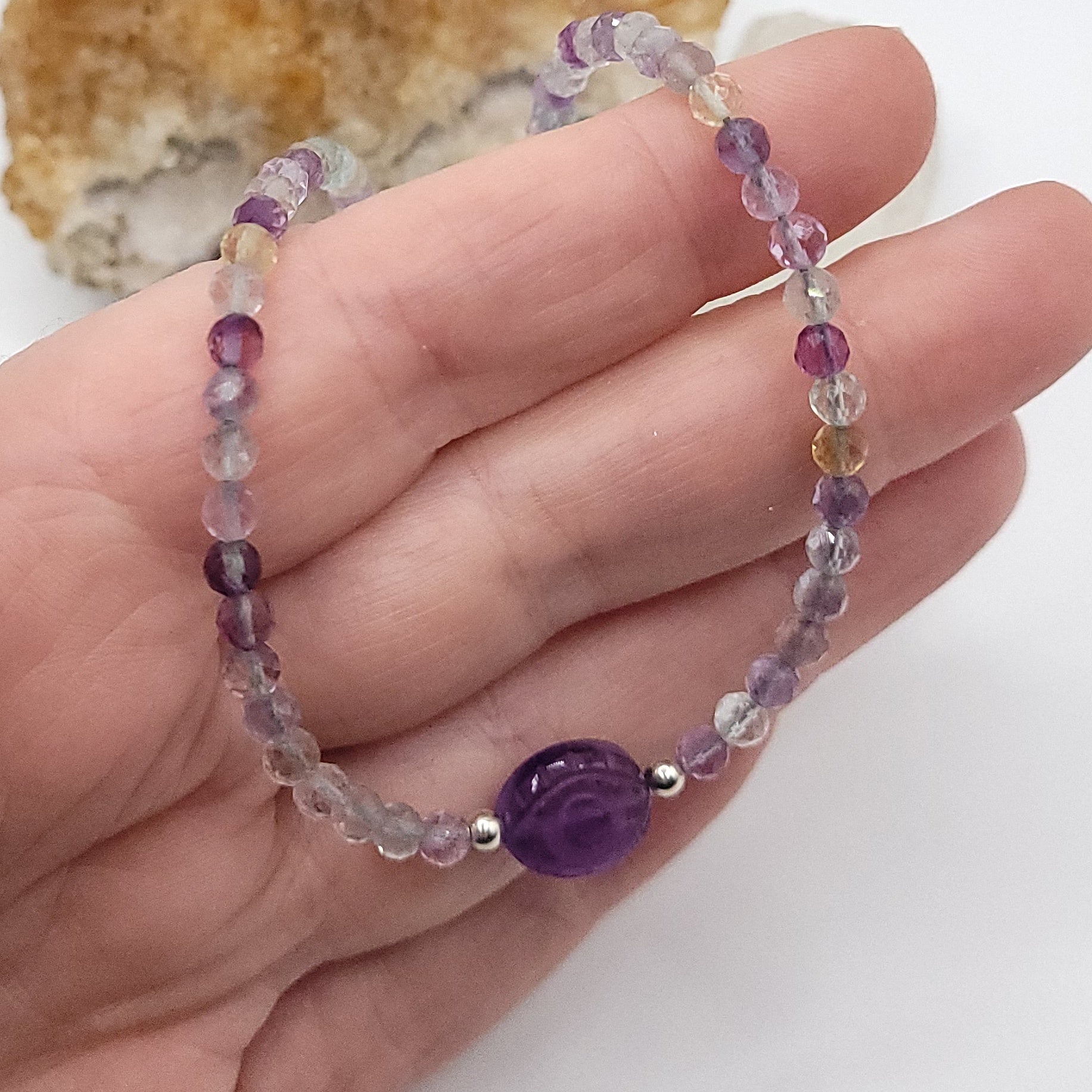 🔸 Stone: Amethyst Evil Eye & 4mm Rainbow Fluorite Beads