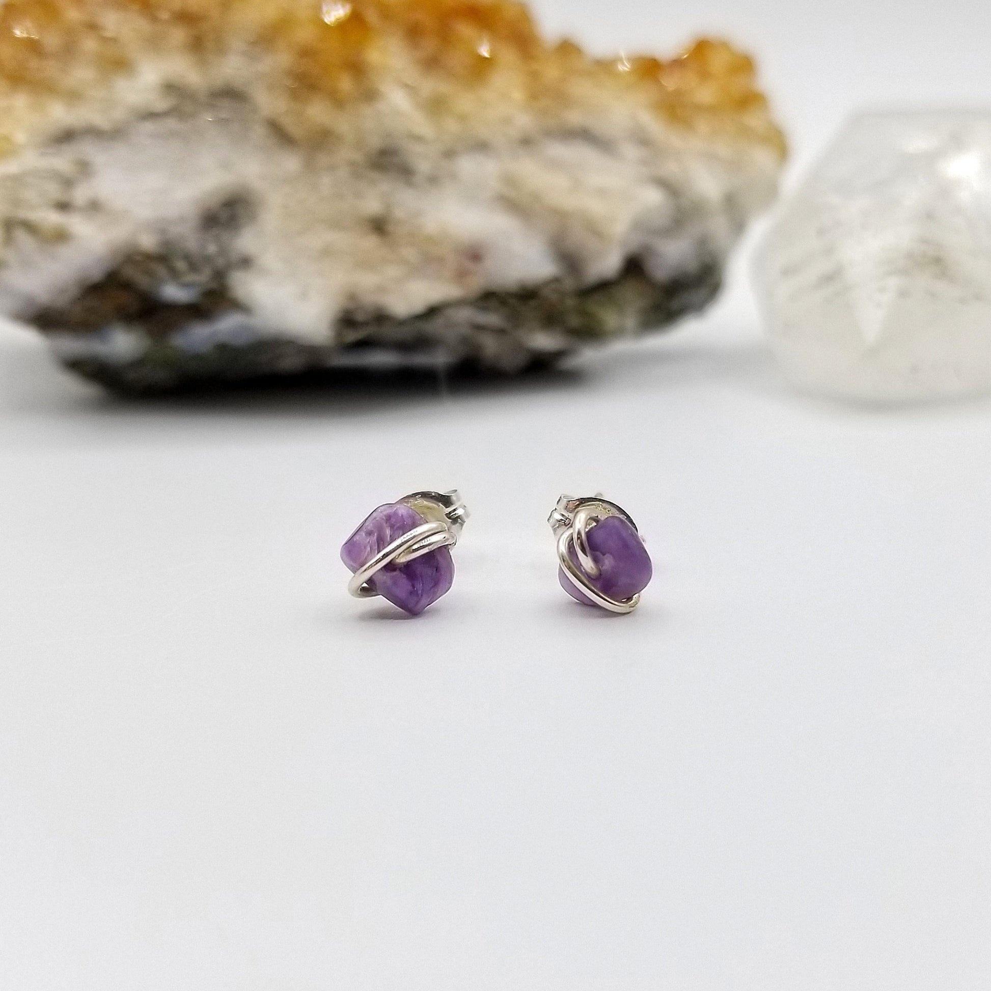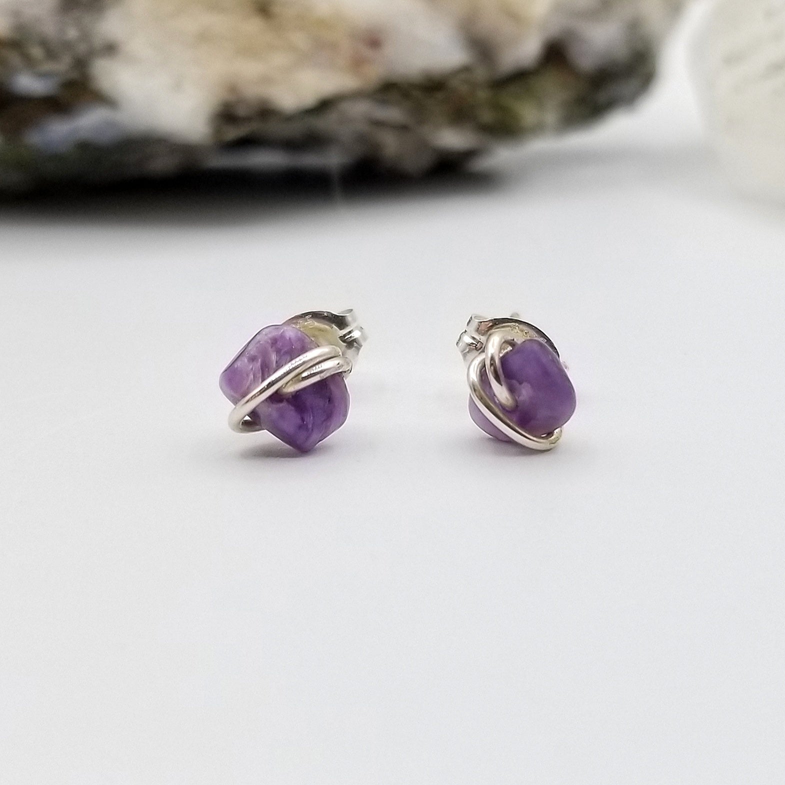 Charoite Crystal Stud Earrings in Sterling Silver Wire