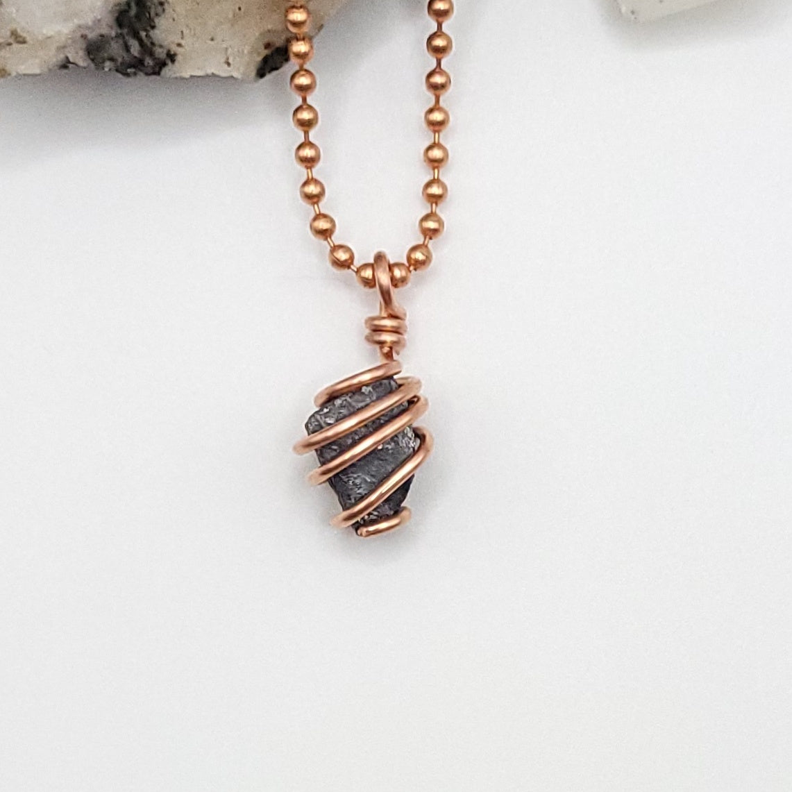 This beautiful raw Galena wrapped in pure copper wire. It includes a pure copper ball chain or a black or brown adjustable faux suede cord (adjusts from about 12"-24")