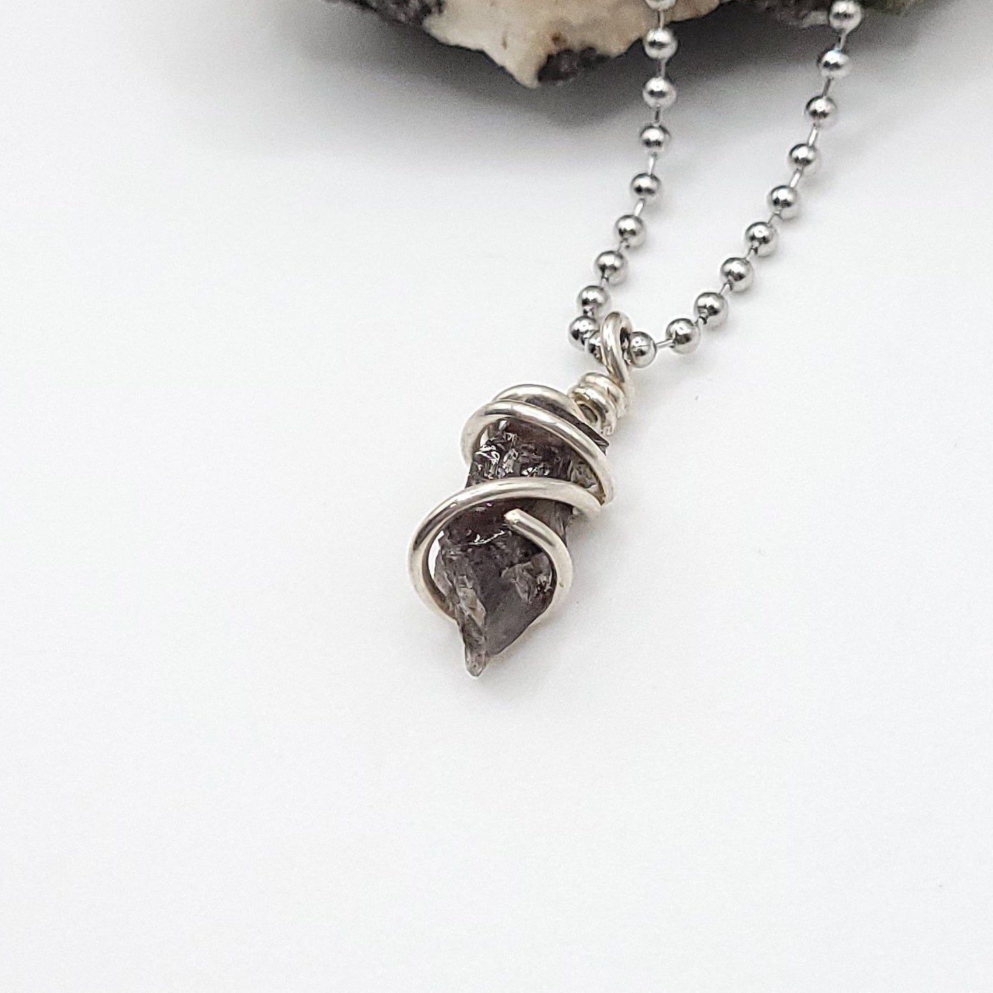 Raw Smoky Quartz Necklace in Silver – Crystal for Grounding & Protection