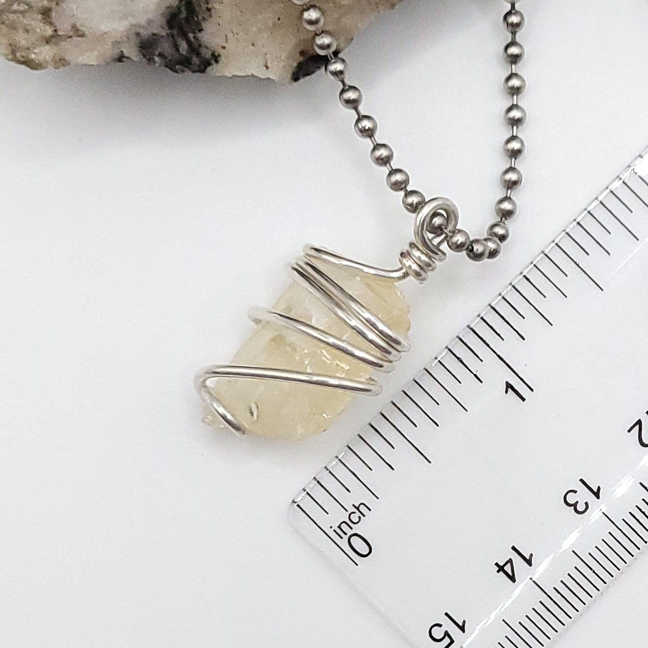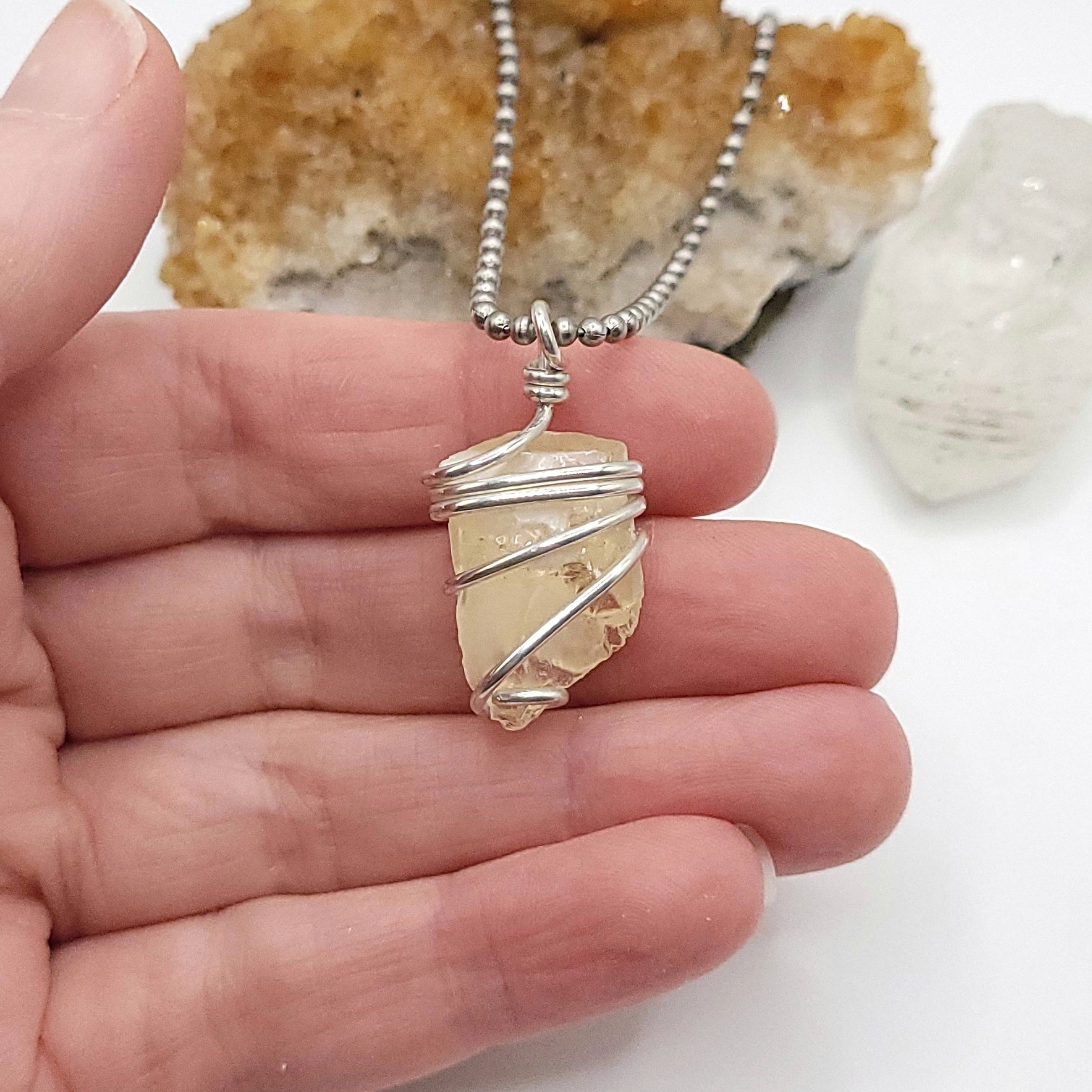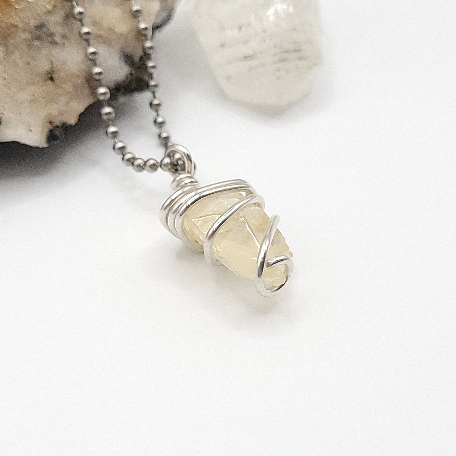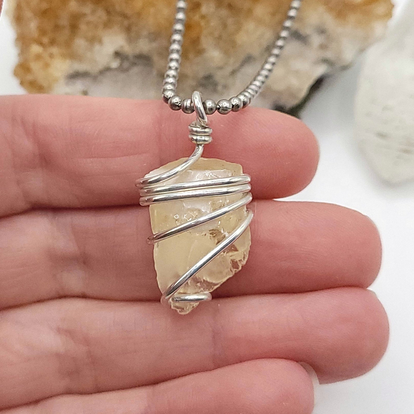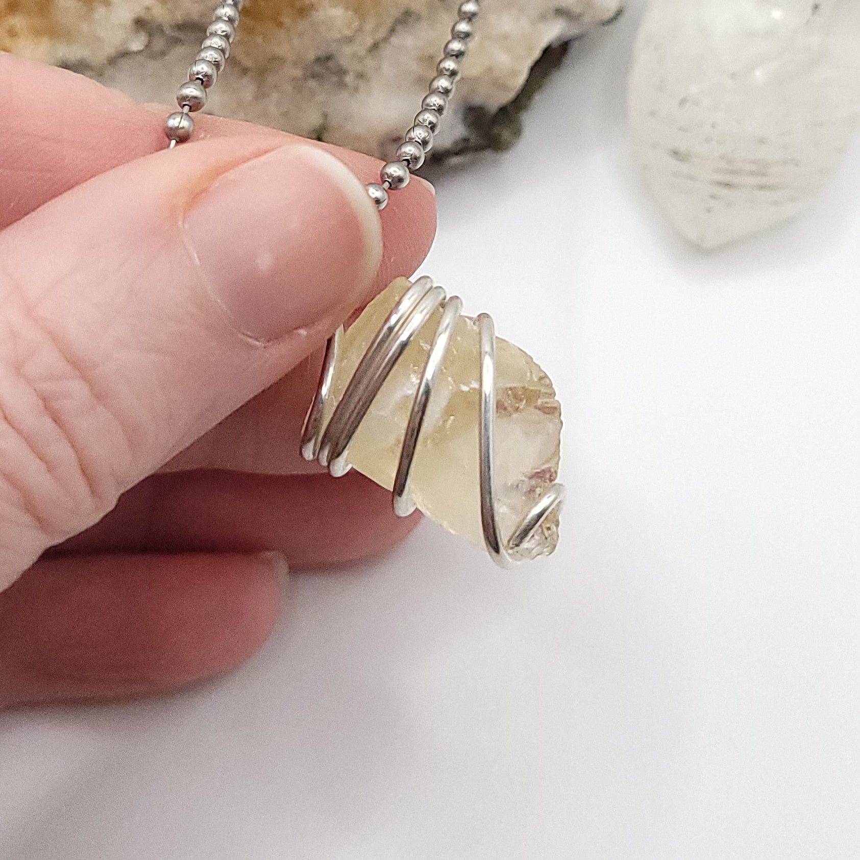 Raw Honey Calcite Crystal Necklace in Silver Wire