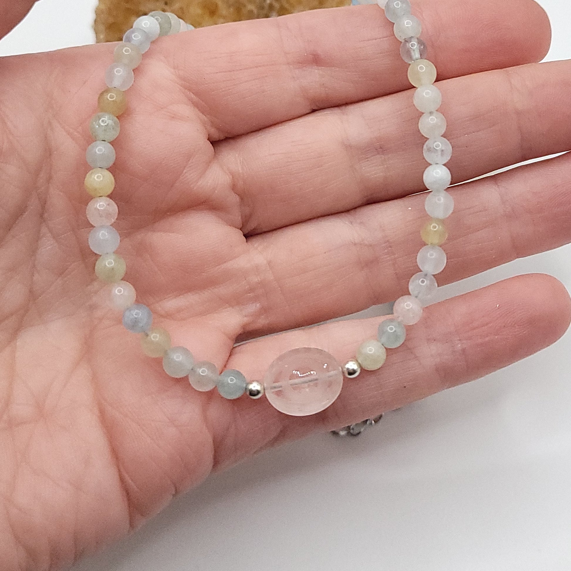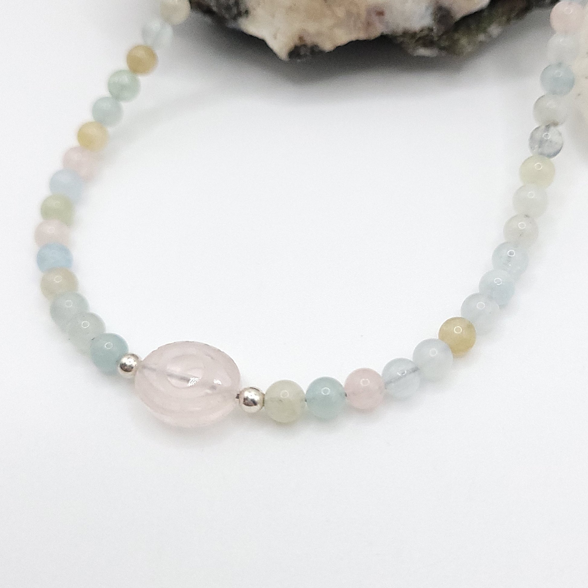 🔸 Stone: Rose Quartz Evil Eye & 4mm Morganite Beads