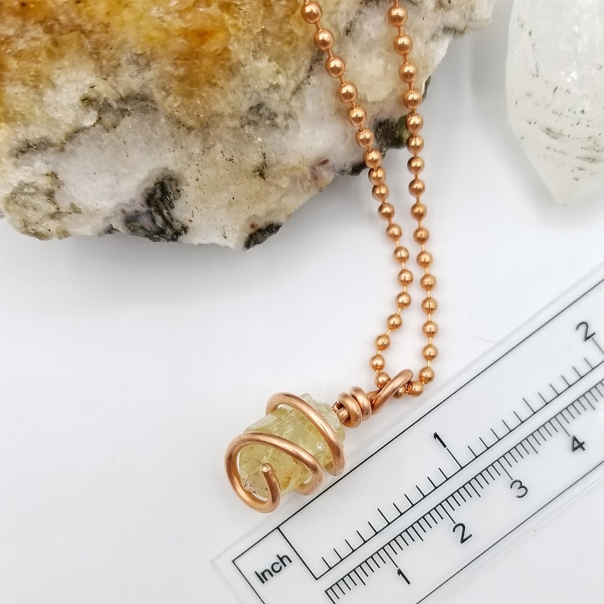 Raw Yellow Apatite Crystal Necklace in Copper Wire